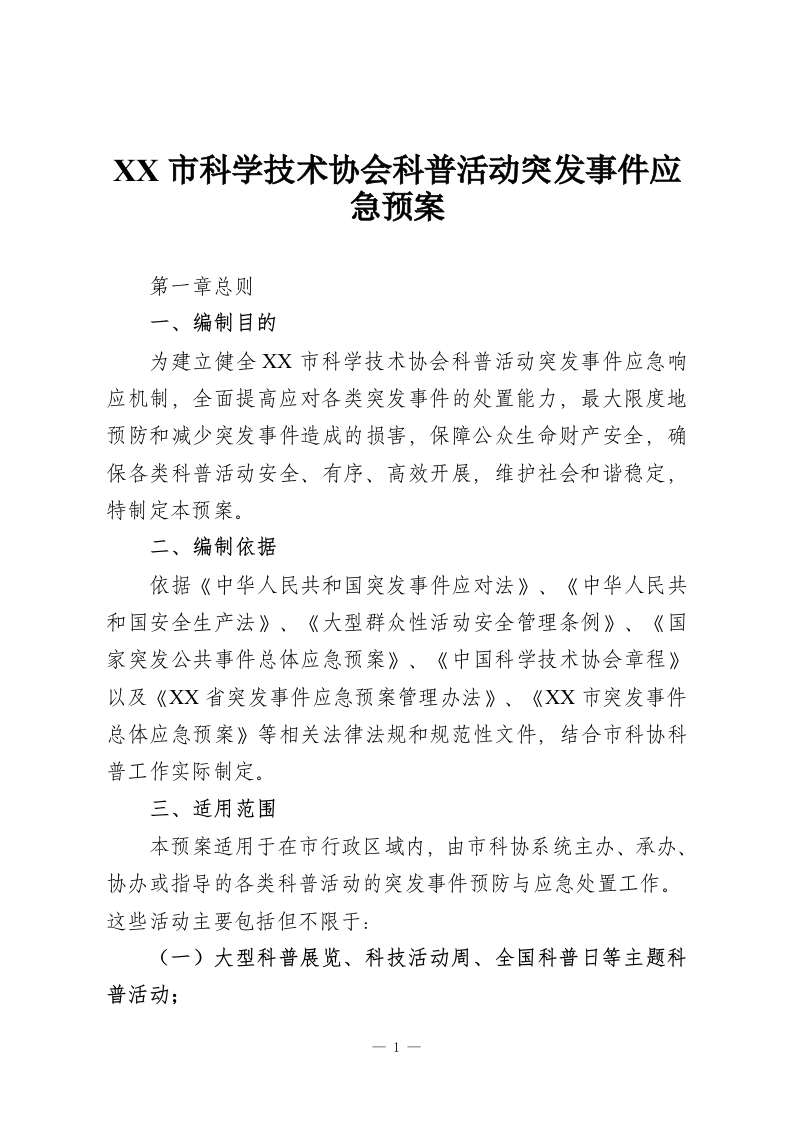 首页精选范文XX市科学技术协会科普活动突发事件应急预案