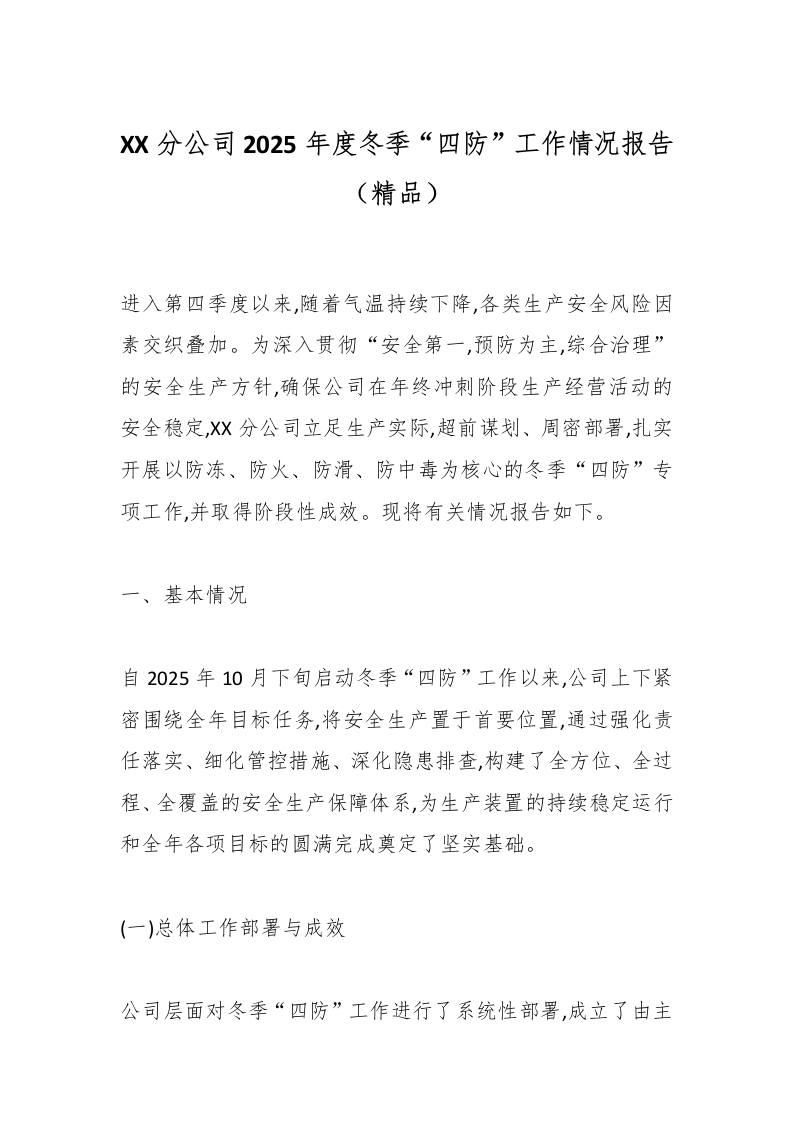 首页精选范文XX分公司2025年度冬季“四防”工作情况报告(精品)_副本
