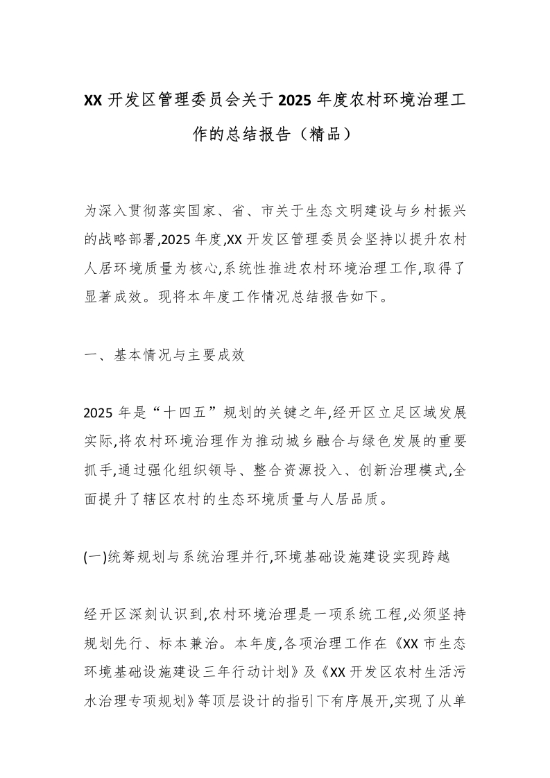 XX开发区管理委员会关于2025年度农村环境治理工作的总结报告(精品)_副本