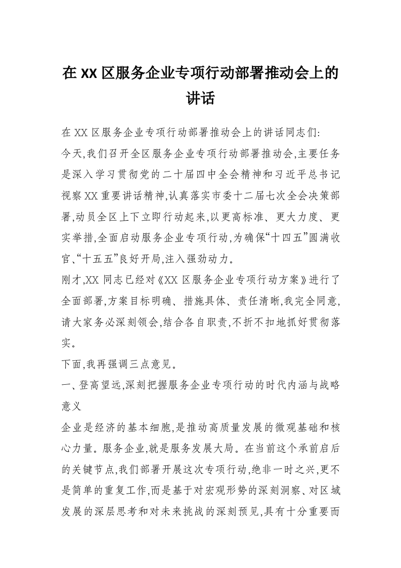 首页学习提升在XX区服务企业专项行动部署推动会上的讲话