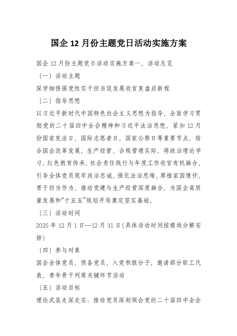 首页讲课讲稿国企12月份主题党日活动实施方案