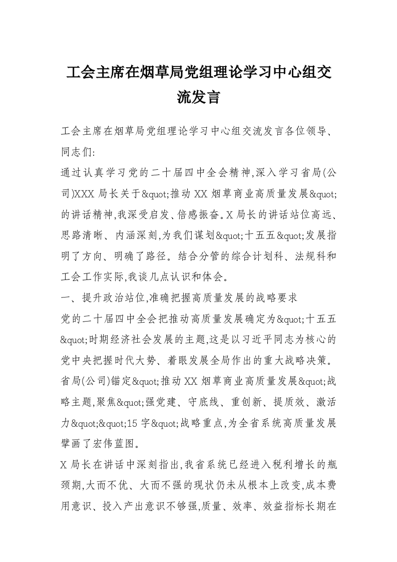 首页讲课讲稿工会主席在烟草局党组理论学习中心组交流发言