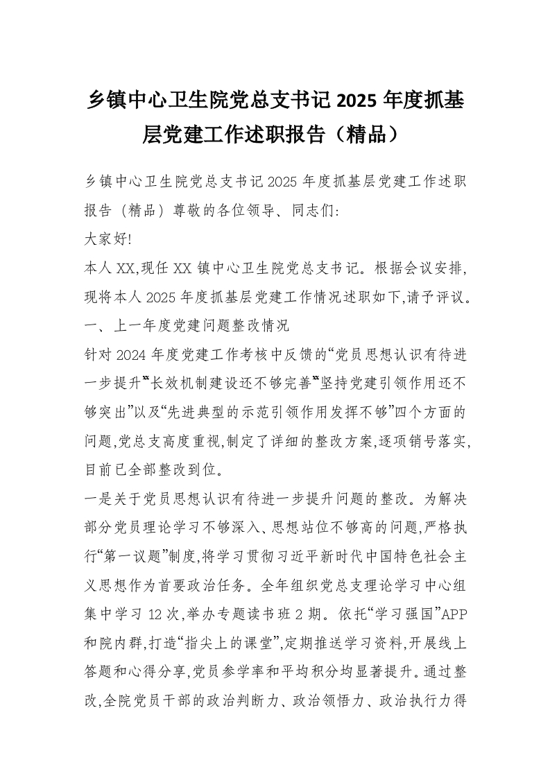 乡镇中心卫生院党总支书记2025年度抓基层党建工作述职报告(精品)
