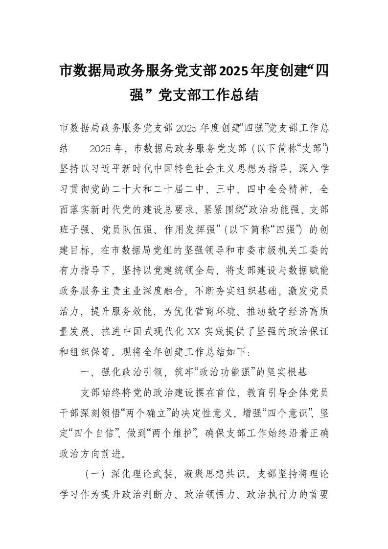 首页写作素材市数据局政务服务党支部2025年度创建“四强”党支部工作总结