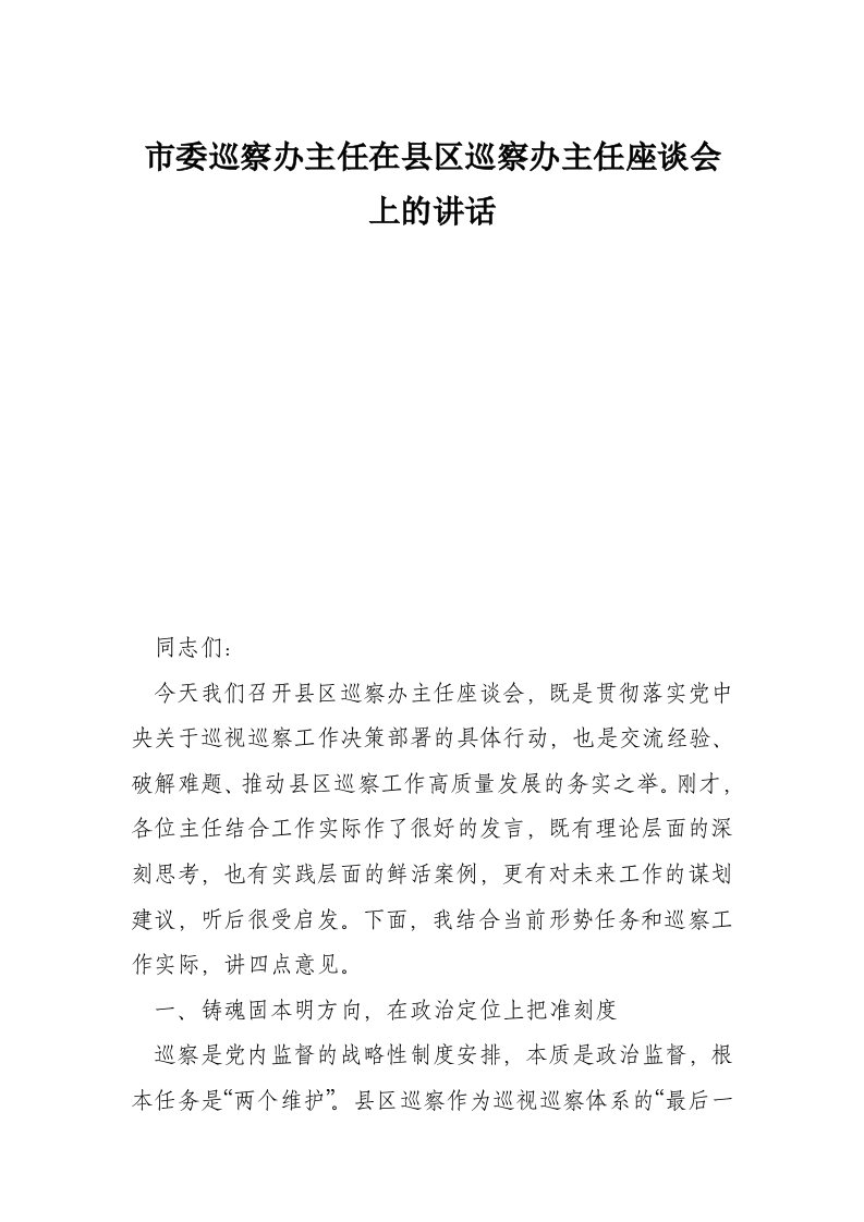 市委巡察办主任在县区巡察办主任座谈会上的讲话