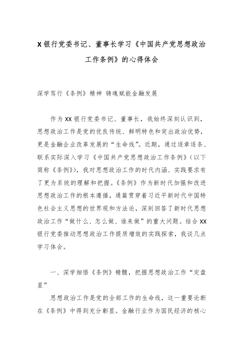 X银行党委书记、董事长学习《中国***思想政治工作条例》的心得体会_副本