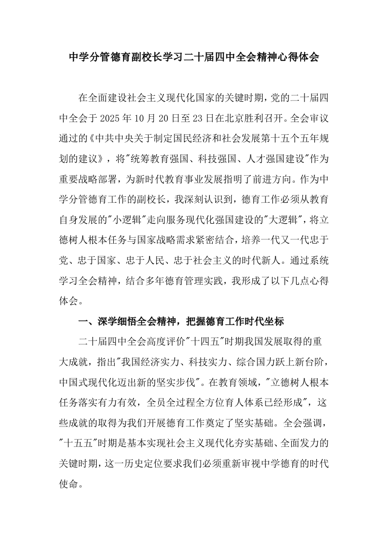 中学分管德育副校长学习二十届四中全会精神心得体会