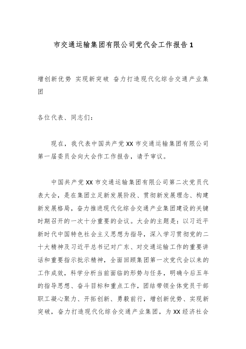 市交通运输集团有限公司党代会工作报告_副本