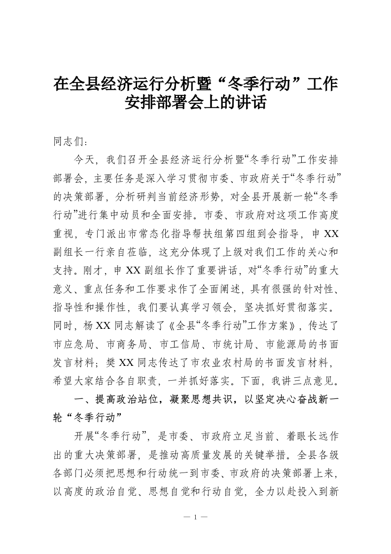 首页写作素材在全县经济运行分析暨“冬季行动”工作安排部署会上的讲话