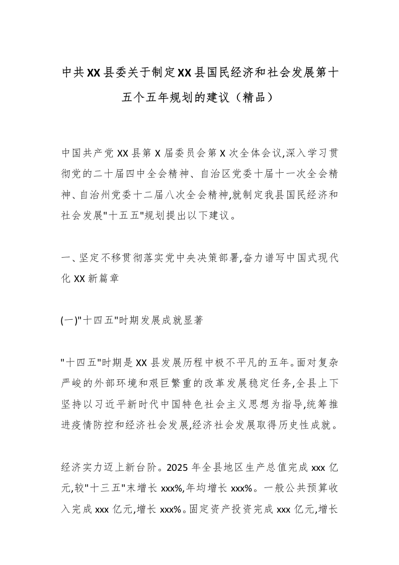 中共XX县委关于制定XX县国民经济和社会发展第十五个五年规划的建议(精品)_副本
