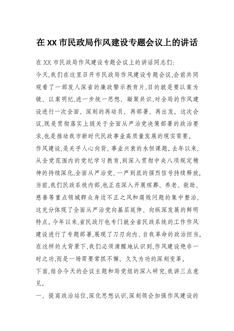首页工作文档在XX市民政局作风建设专题会议上的讲话