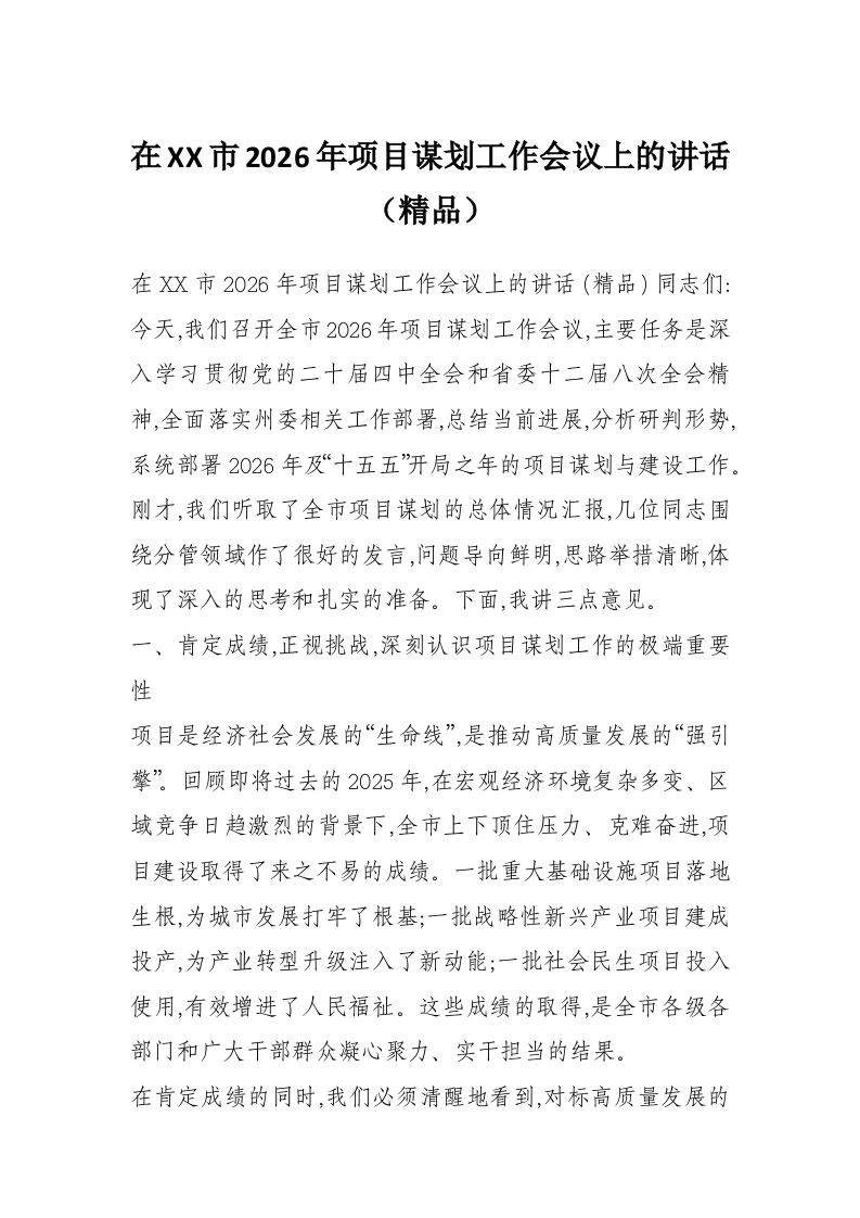 在XX市2026年项目谋划工作会议上的讲话(精品)