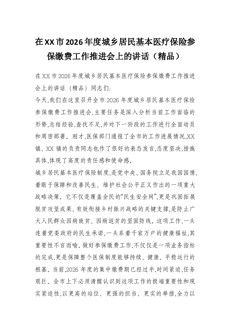 在XX市2026年度城乡居民基本医疗保险参保缴费工作推进会上的讲话(精品)