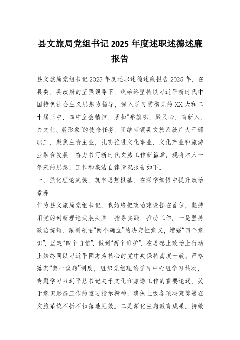 首页工作文档县文旅局党组书记2025年度述职述德述廉报告
