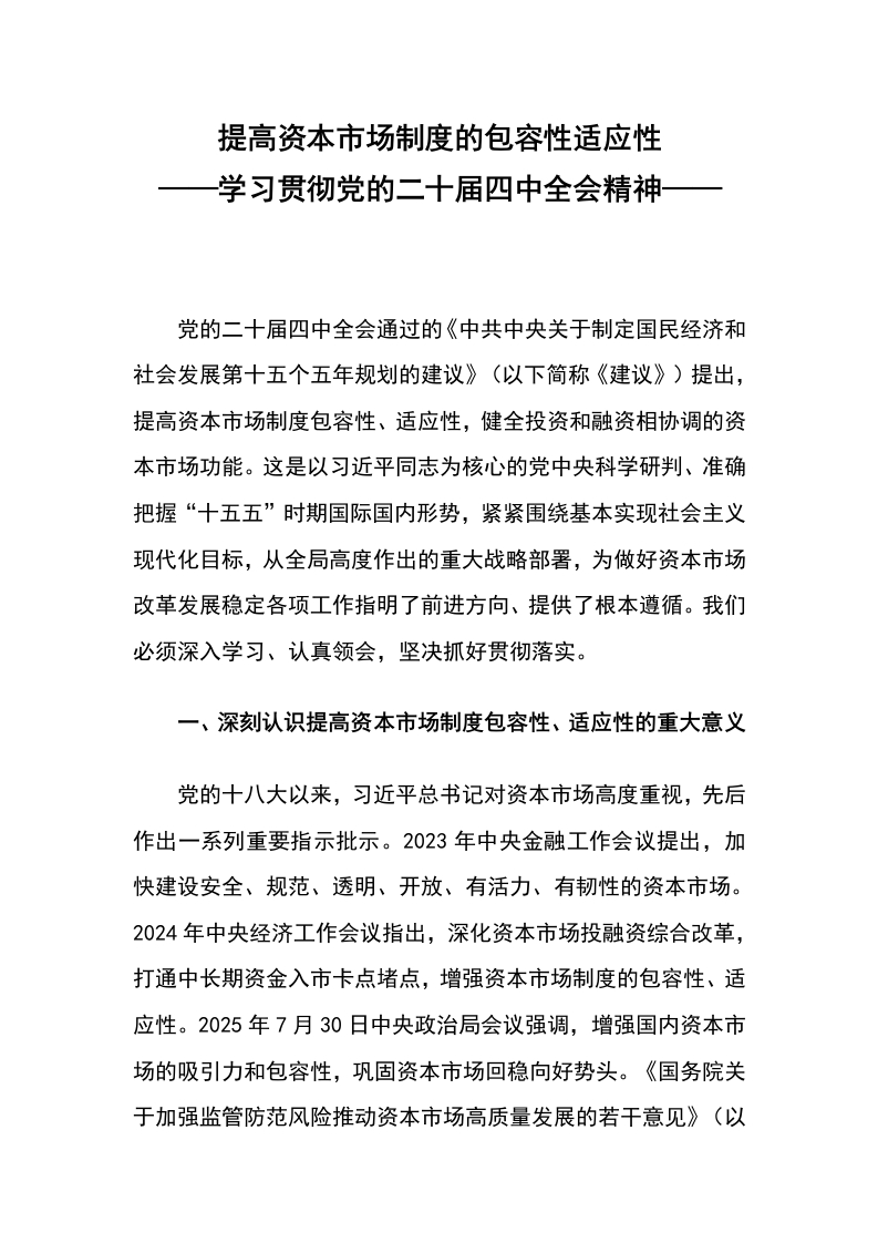 首页材料汇编精美大气提高资本市场制度的包容性适应性PPT二十届四中全会系列学习课件(讲稿)