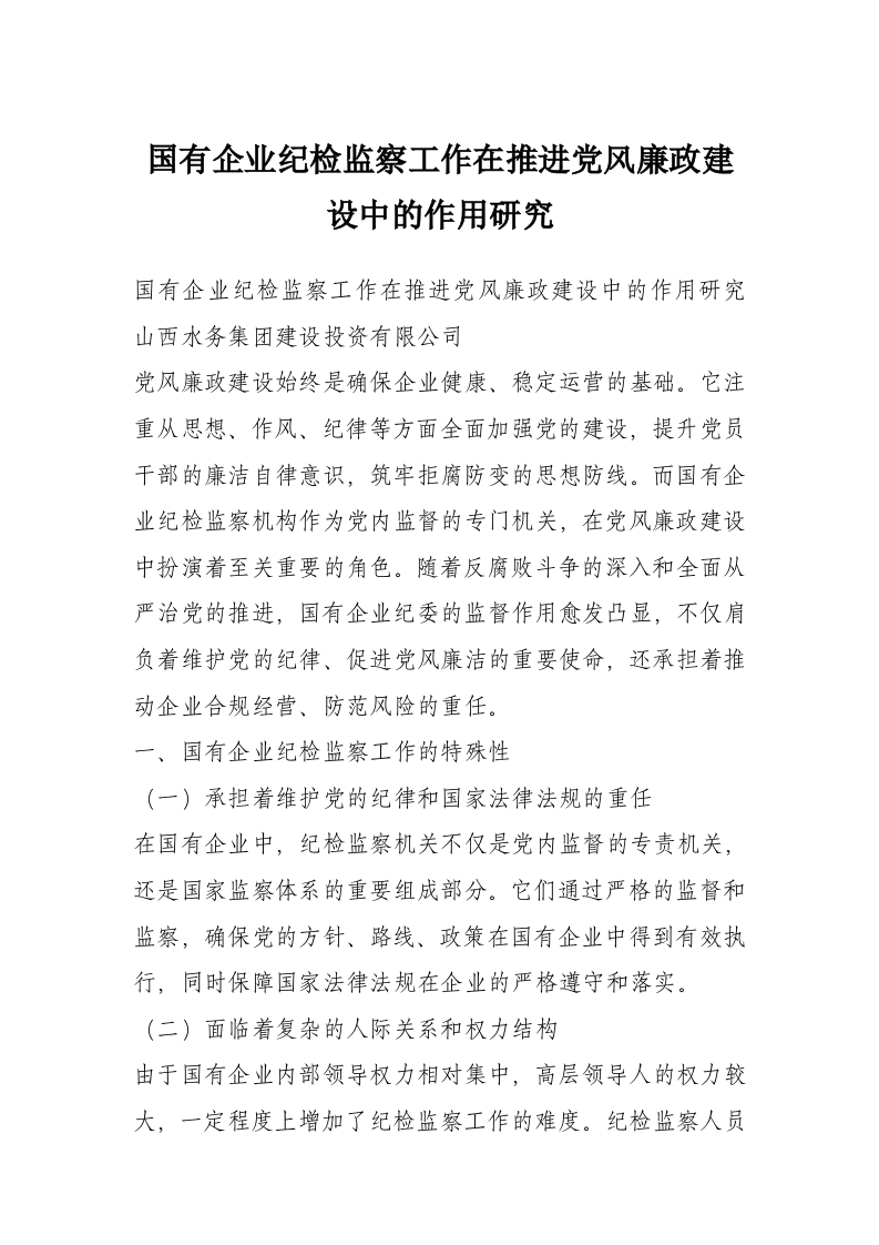 国有企业纪检监察工作在推进党风廉政建设中的作用研究