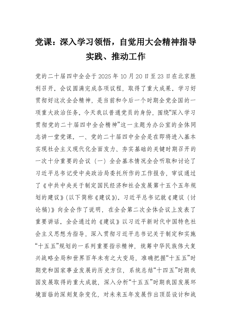 党课:深入学习领悟,自觉用大会精神指导实践、推动工作