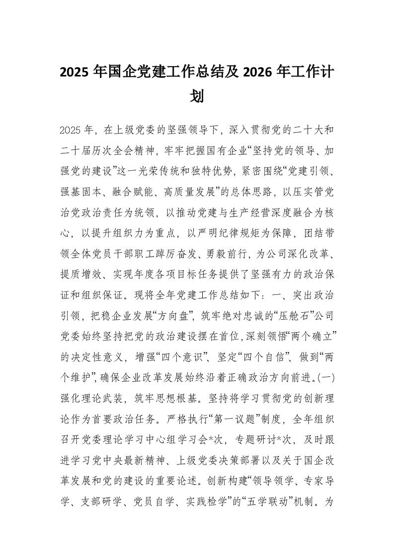 首页材料汇编2025年国企党建工作总结及2026年工作计划