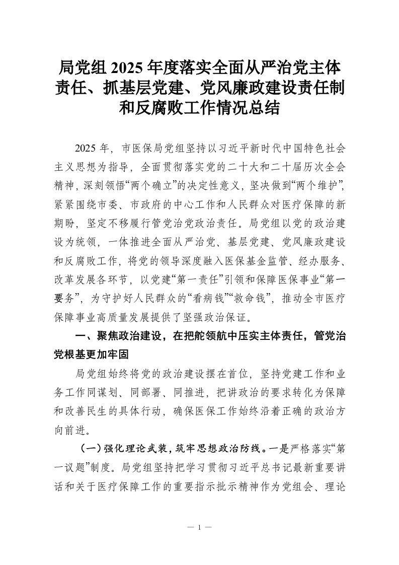 - 局党组2025年度落实全面从严治党主体责任、抓基层党建、党风廉政建设责任制和反腐败工作情况总结_1