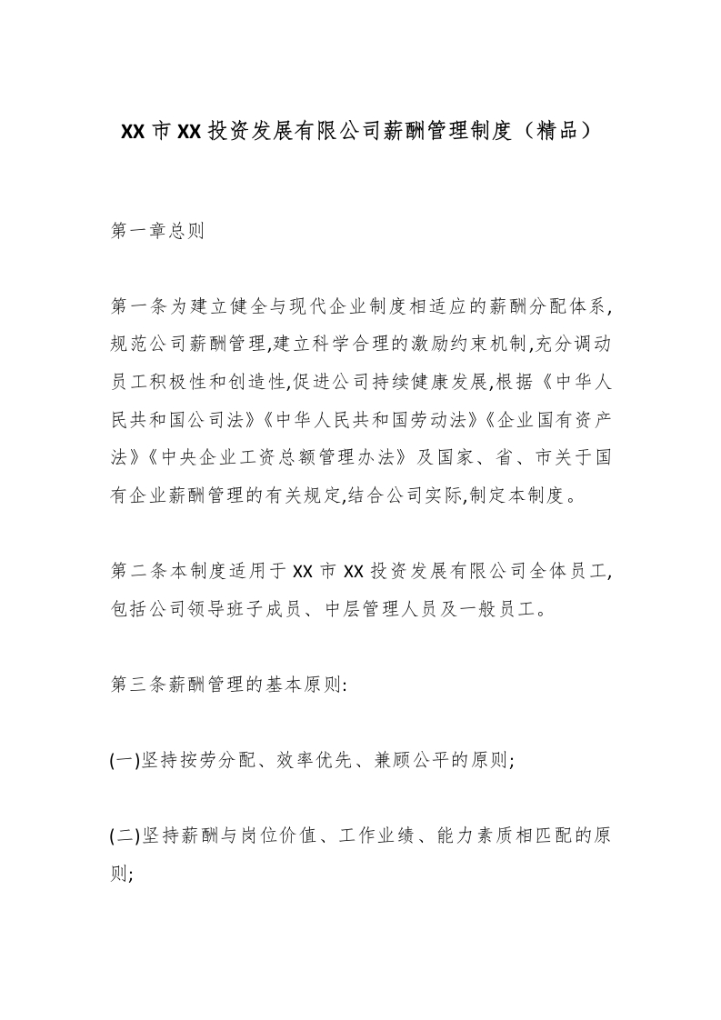 - XX市XX投资发展有限公司薪酬管理制度(精品)
