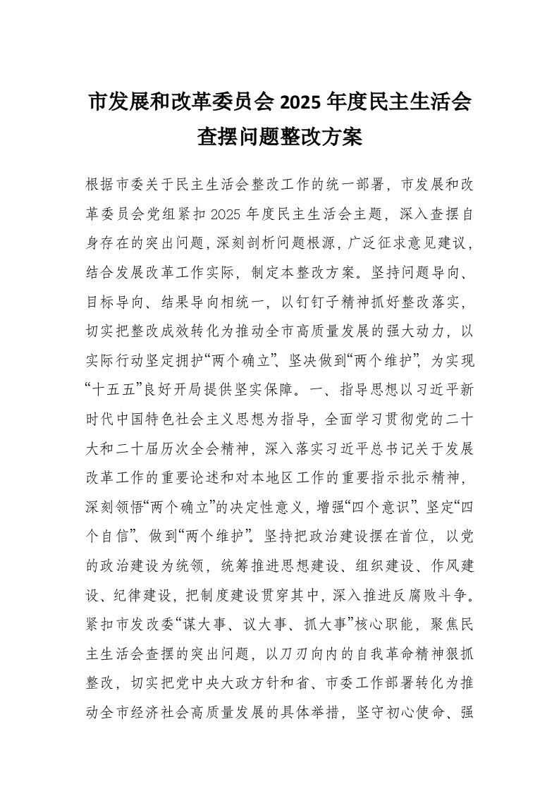 - 市住房和城乡建设局党组2025年度民主生活会查摆问题整改方案