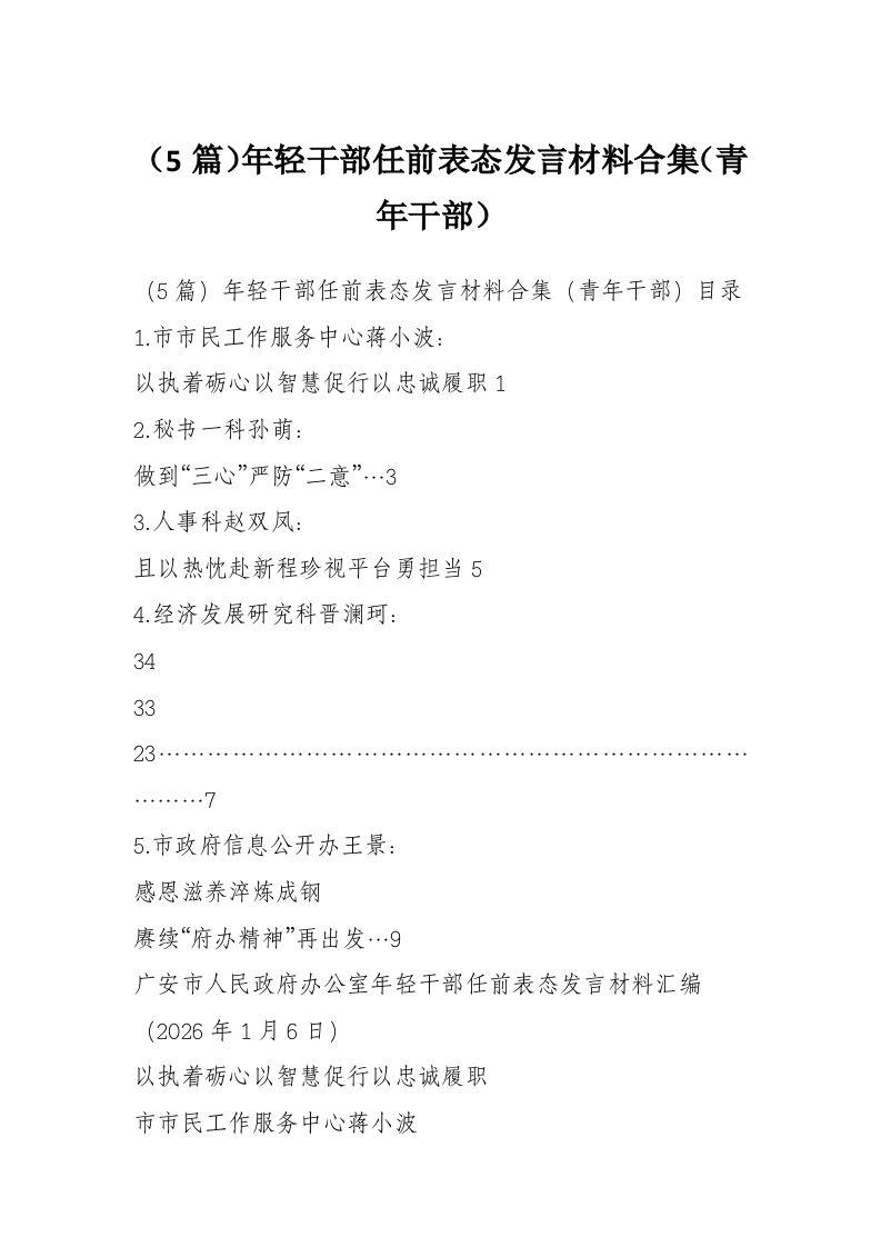 - (5篇)广安市人民政府办公室年轻干部任前表态发言材料汇编(青年干部)