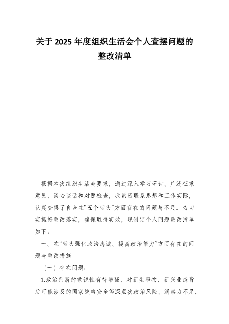- 关于2025年度组织生活会个人查摆问题的整改清单(集团公司)