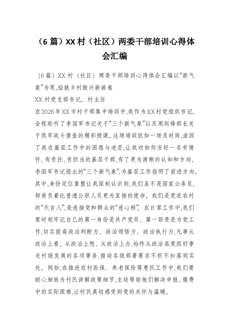 - 村(社区)两委干部培训心得体会汇编6篇