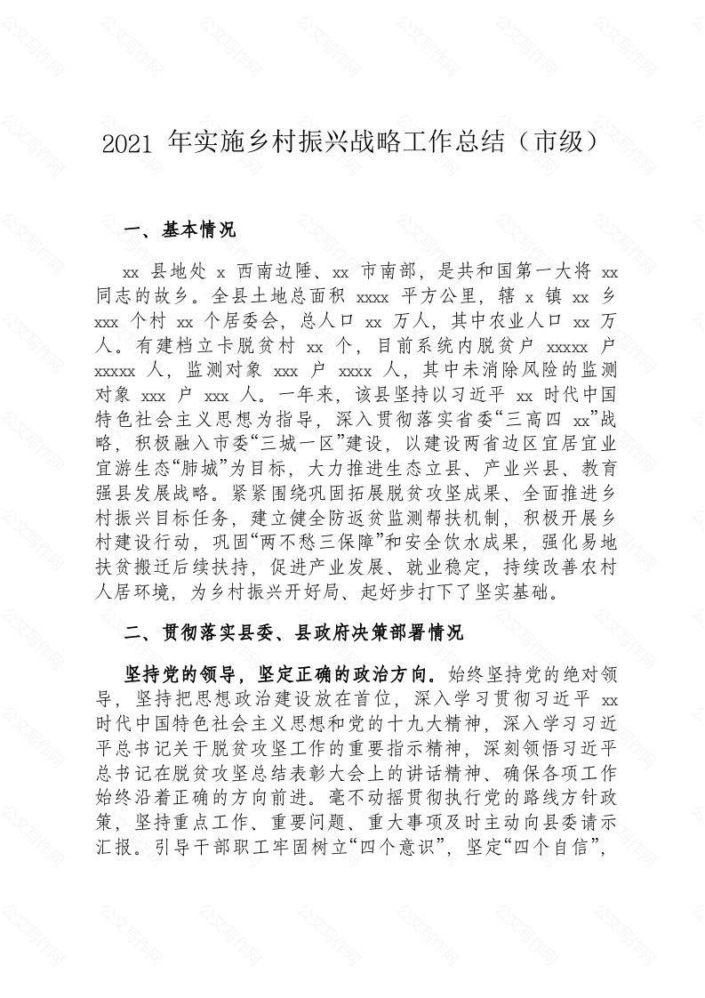 首页精选范文2021年实施乡村振兴战略工作总结(市级)