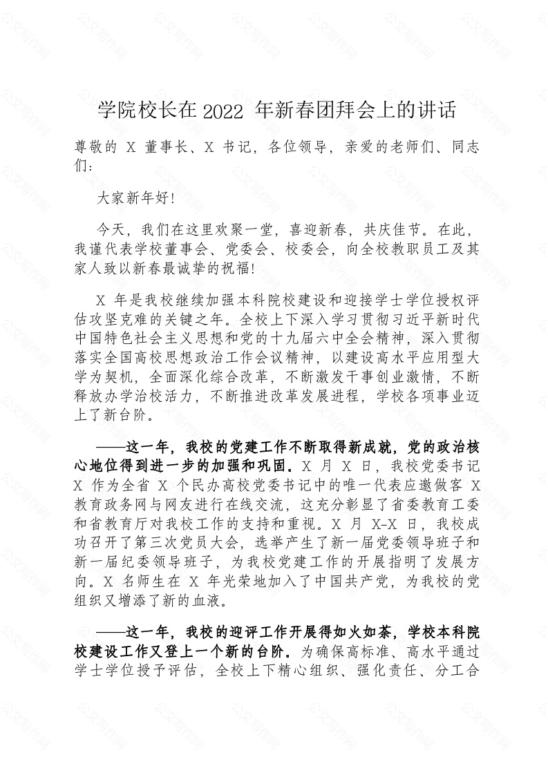 首页精选范文学院校长在2022年新春团拜会上的讲话