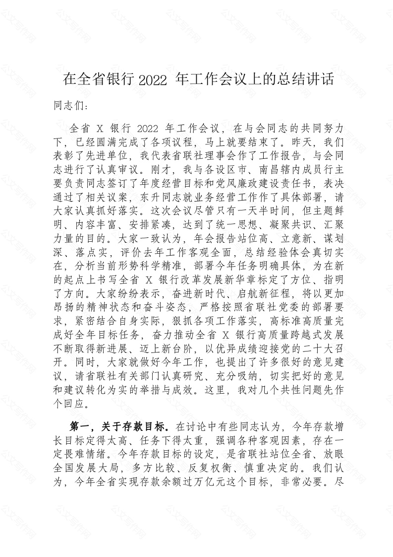 首页精选范文在全省银行2022年工作会议上的总结讲话