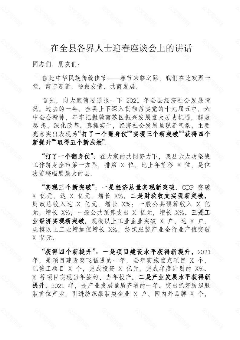 首页精选范文在全县各界人士迎春座谈会上的讲话