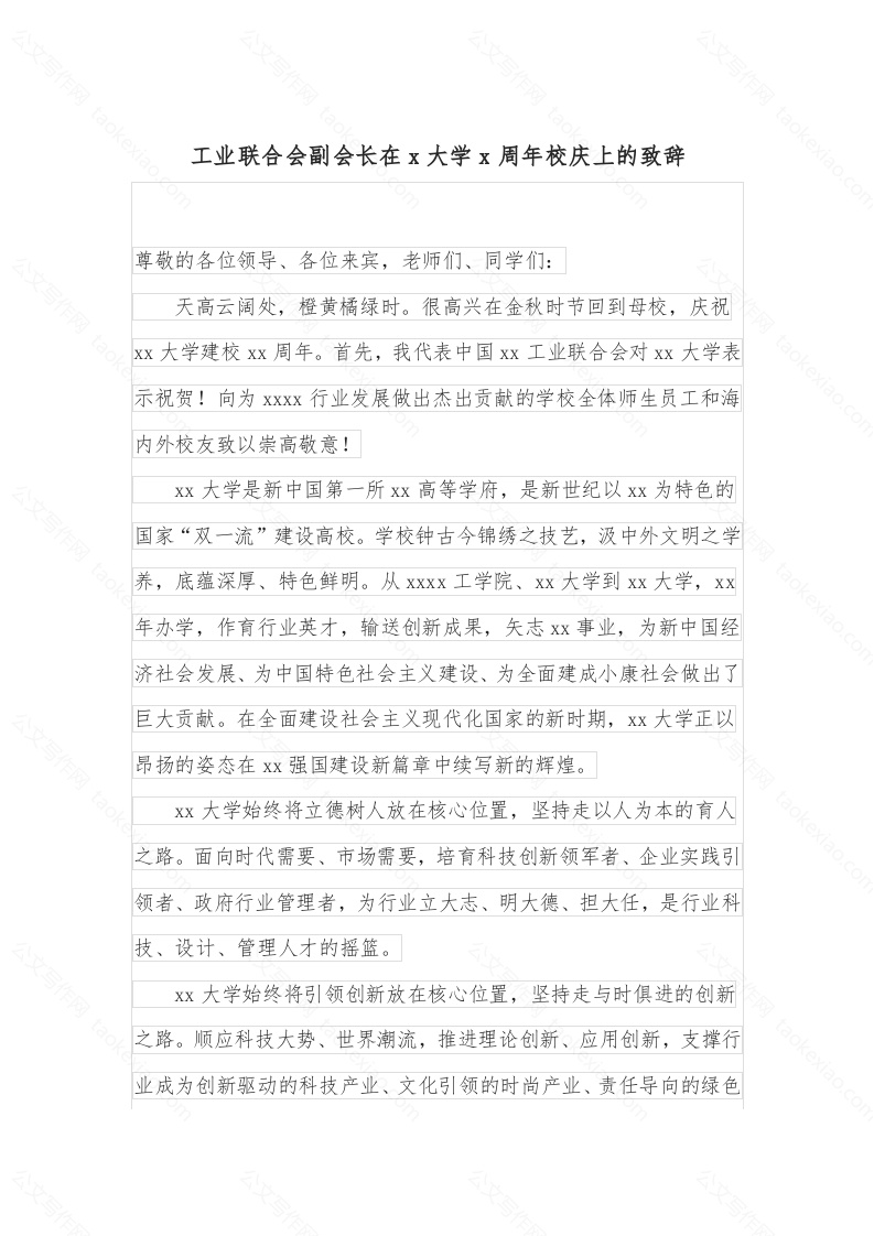 首页学习提升工业联合会副会长在x大学x周年校庆上的致辞