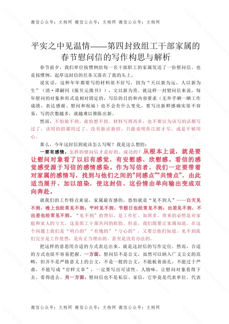 首页精选范文平实之中见温情——第四封致组工干部家属的春节慰问信的写作构思与解析