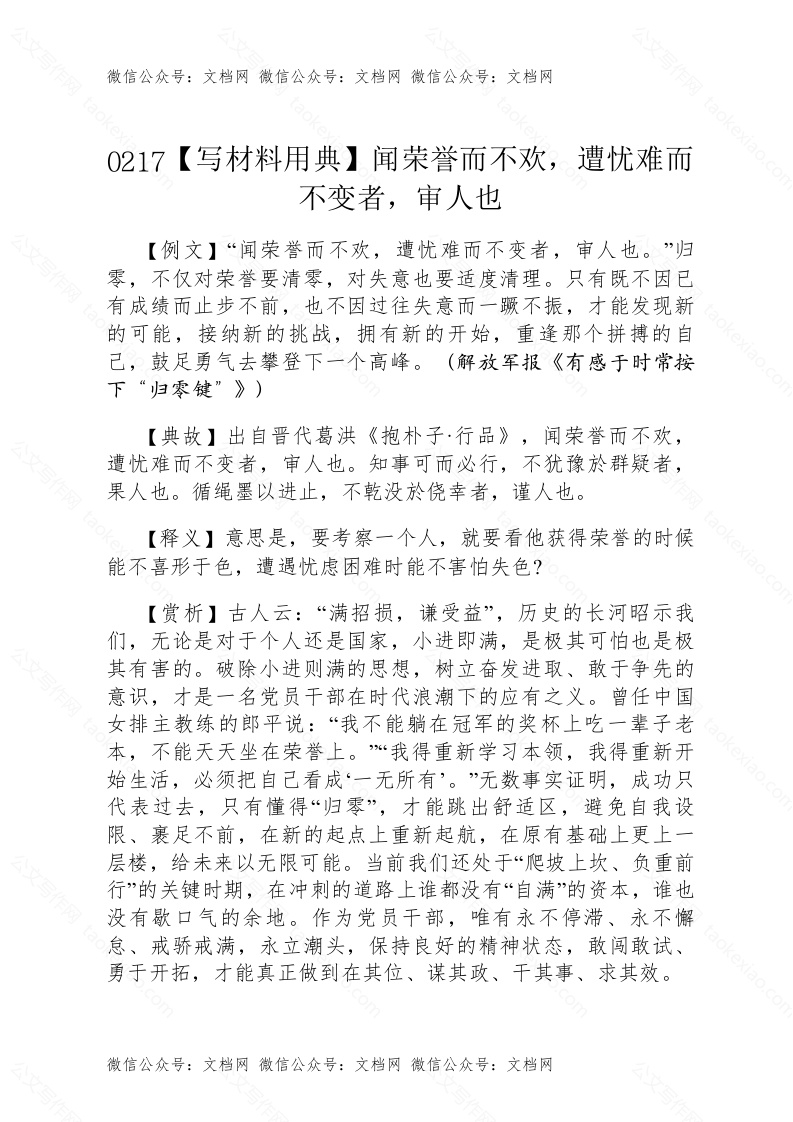 0217【写材料用典】闻荣誉而不欢,遭忧难而不变者,审人也