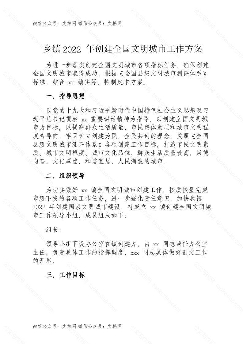 首页写作素材乡镇2022年创建全国文明城市工作方案