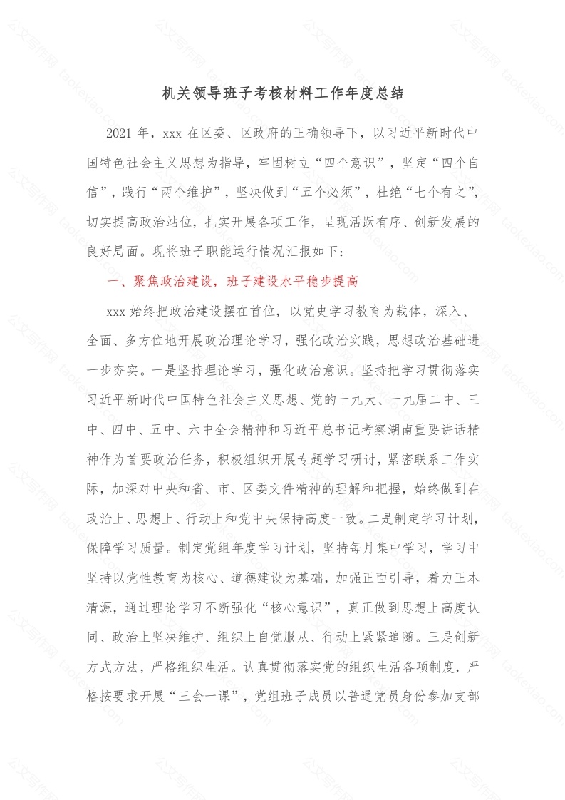 首页讲课讲稿机关领导班子考核材料工作年度总结