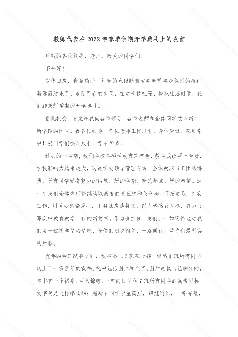 首页讲课讲稿教师代表在2022年春季学期开学典礼上的发言