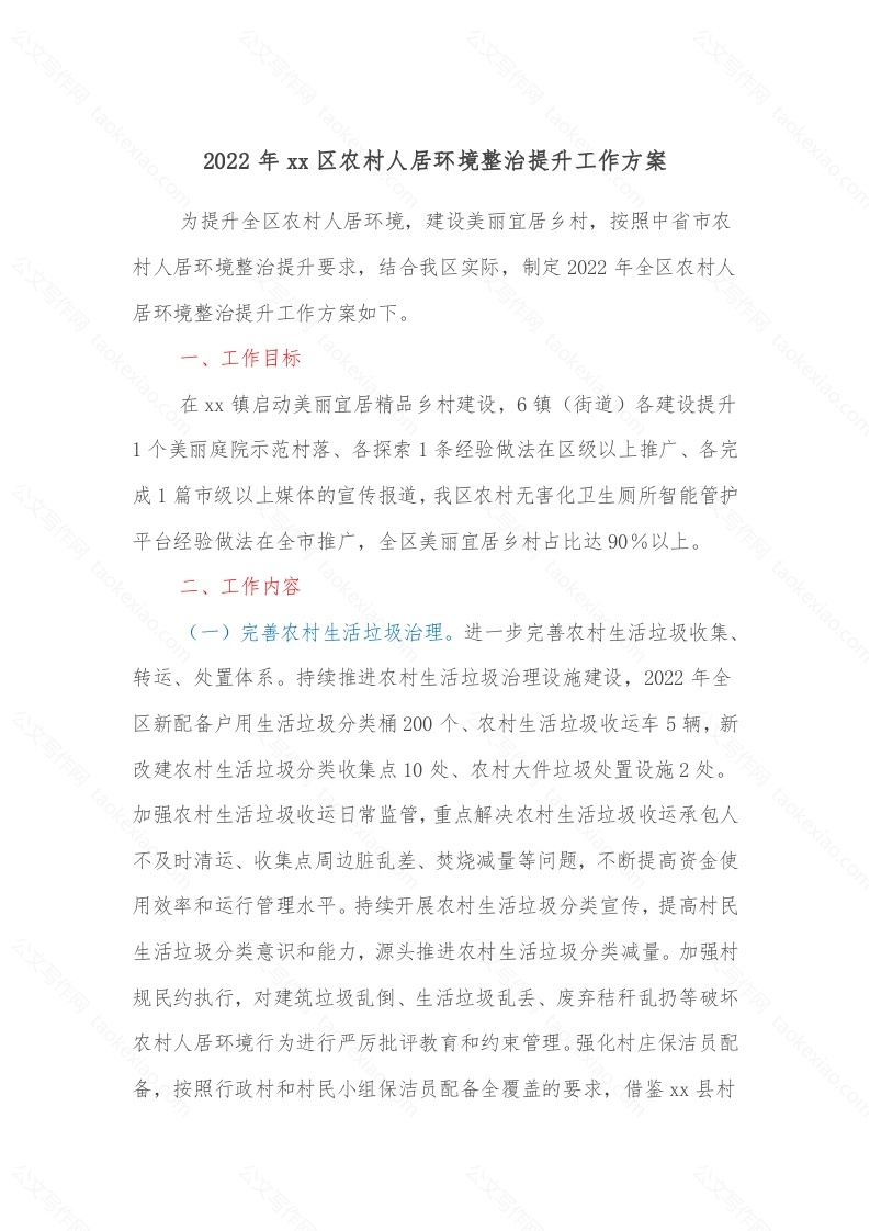 首页讲课讲稿2022年xx区农村人居环境整治提升工作方案