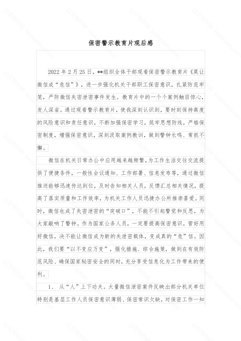 保密警示教育片观后感