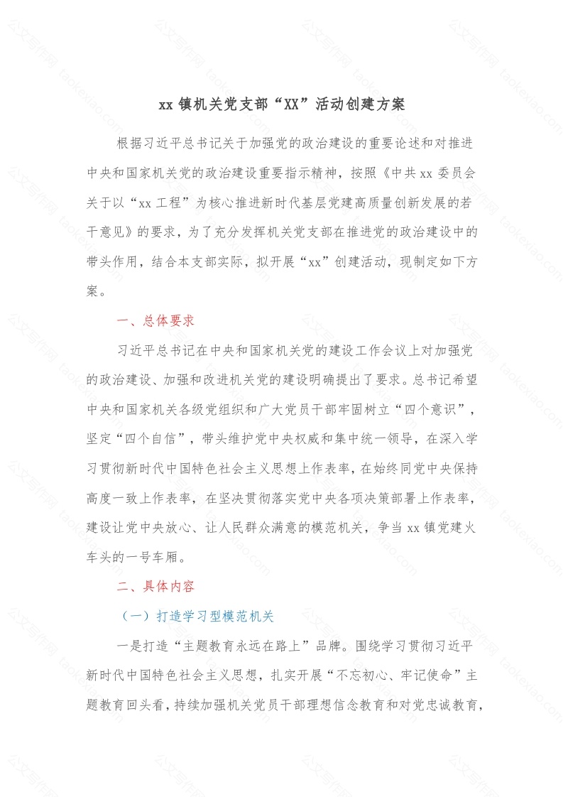 首页工作文档xx镇机关党支部“XX”活动创建方案