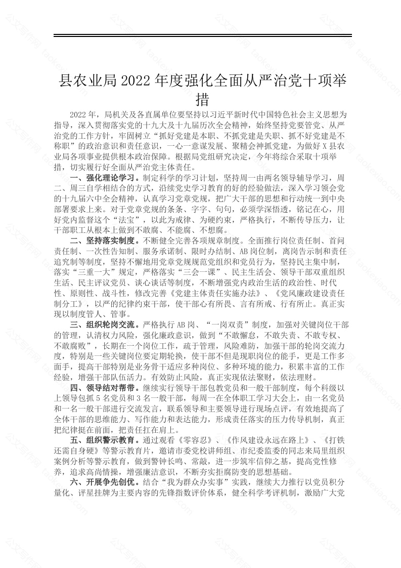 首页工作文档县农业局2022年度强化全面从严治党十项举措