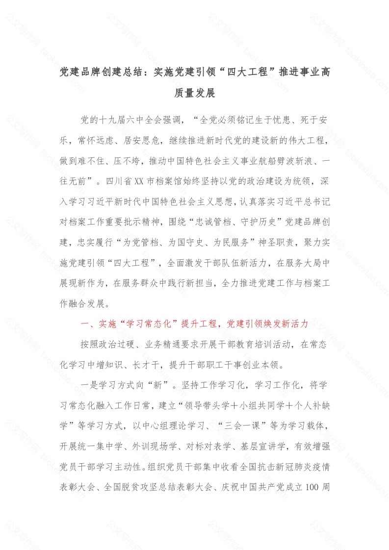 首页讲课讲稿党建品牌创建总结:实施党建引领“四大工程”推进事业高质量发展
