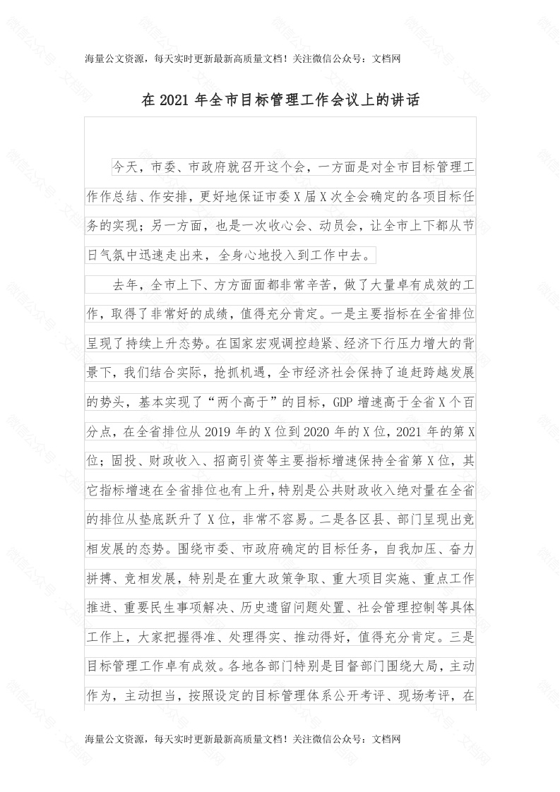 首页讲课讲稿在2021年全市目标管理工作会议上的讲话