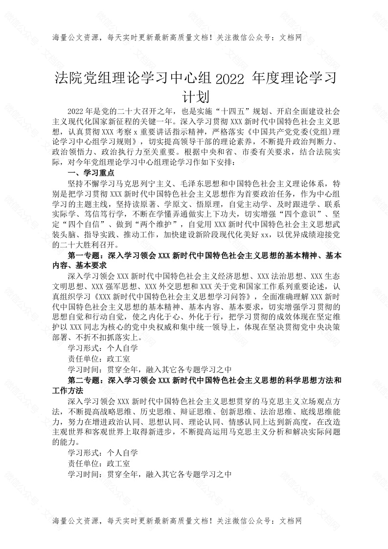 首页工作文档法院党组理论学习中心组2022年度理论学习计划