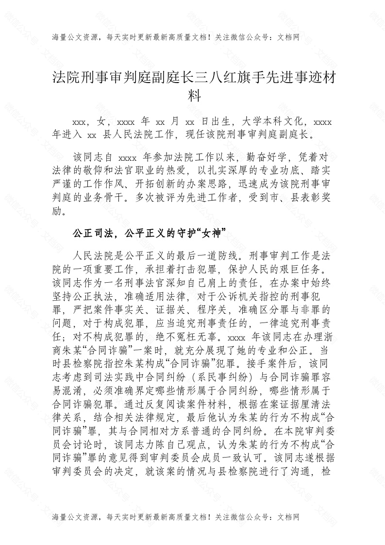 首页工作文档法院刑事审判庭副庭长三八红旗手先进事迹材料