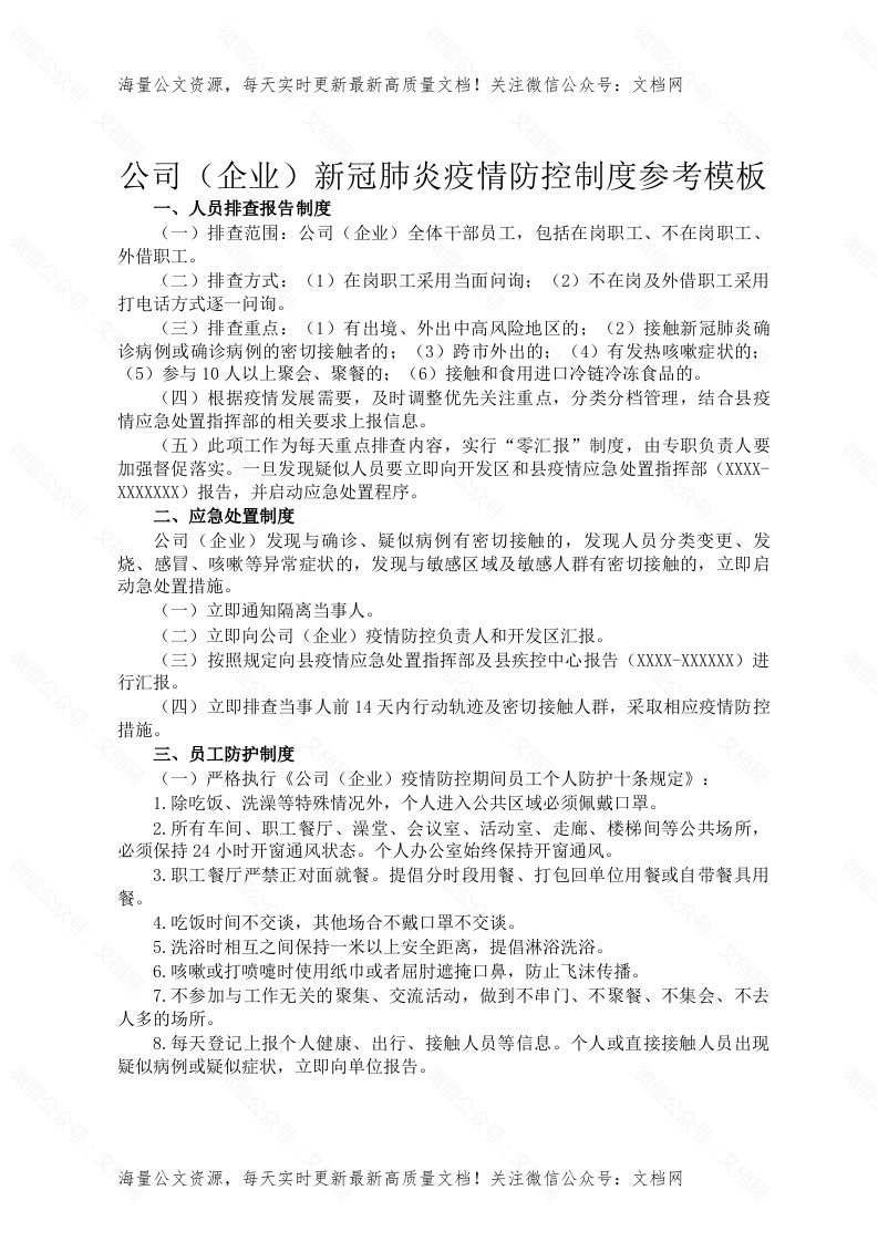 公司(企业)新冠肺炎疫情防控制度参考模板