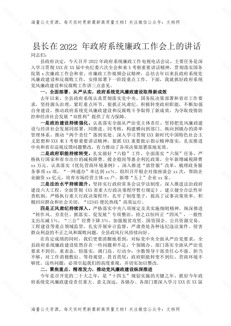 首页精选范文县长在2022年政府系统廉政工作会上的讲话