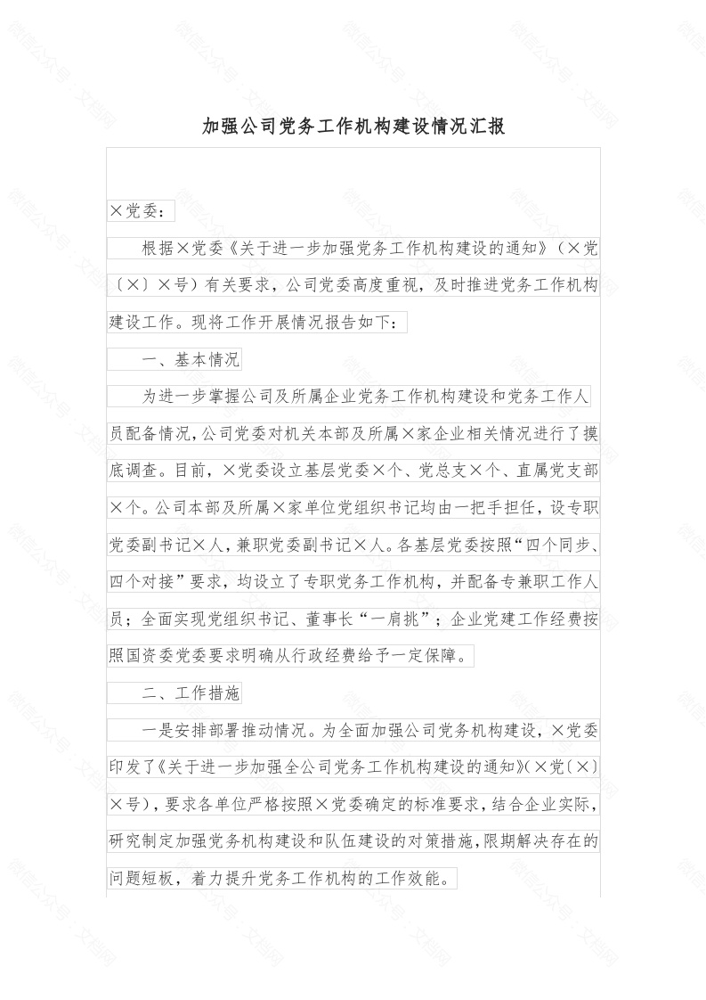 加强公司党务工作机构建设情况汇报