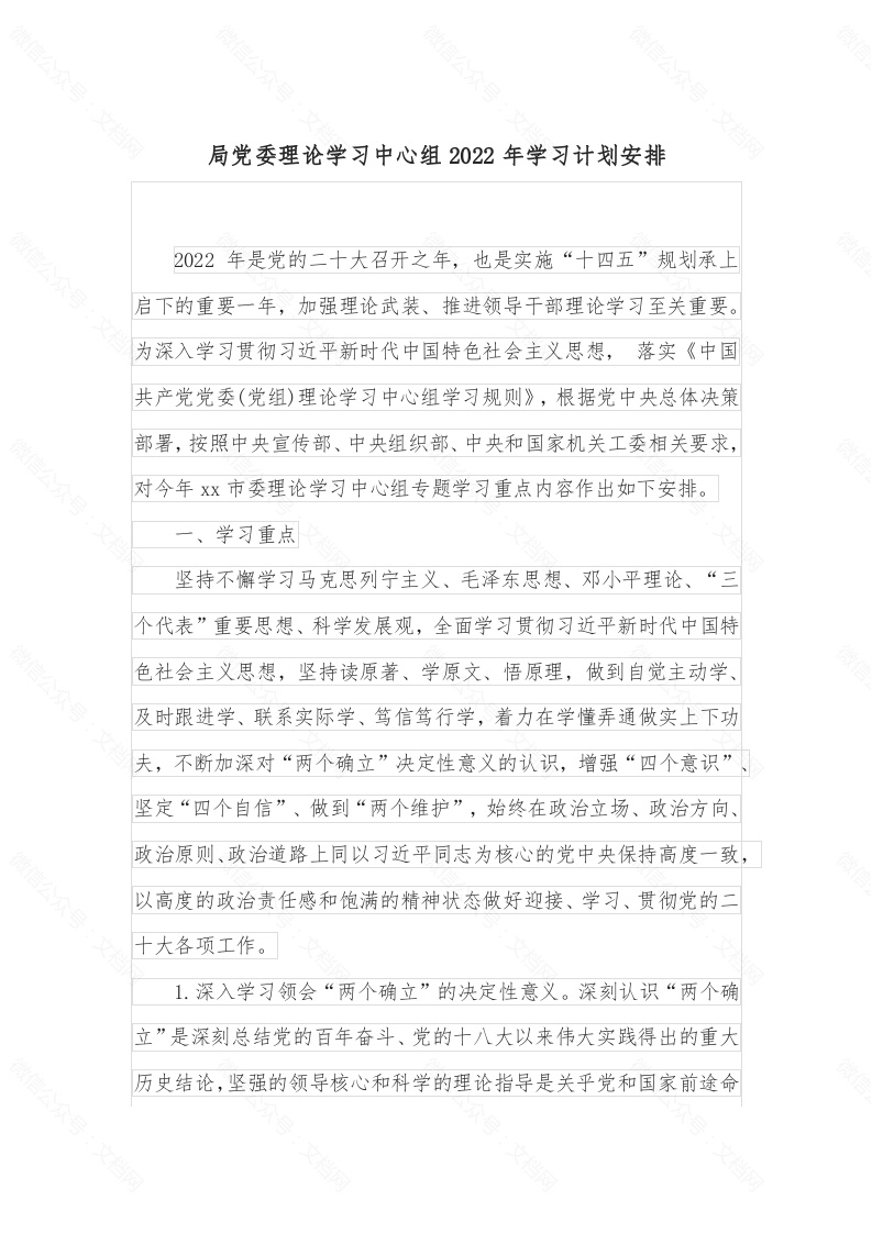 首页工作文档局党委理论学习中心组2022年学习计划安排